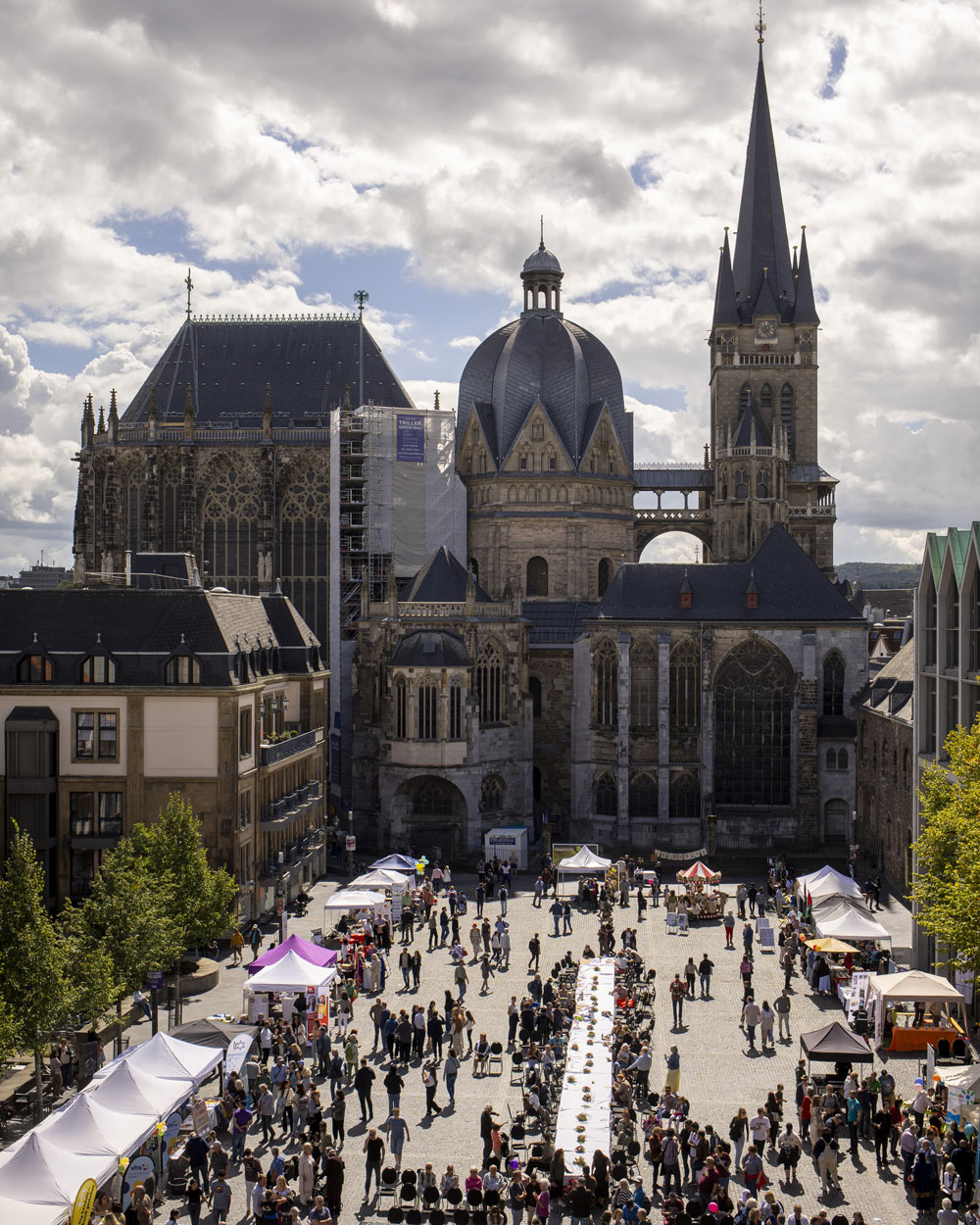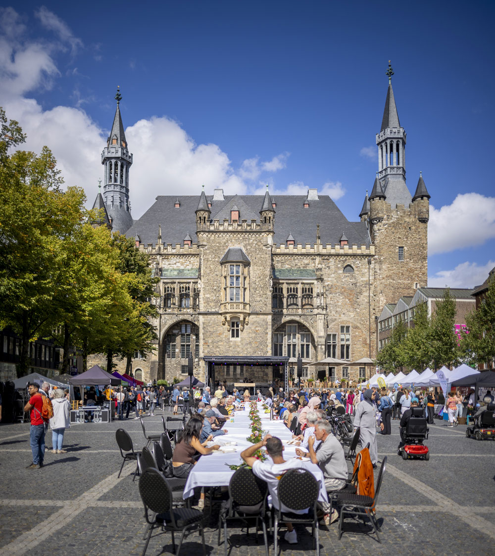 Die Stadt Aachen setzte mit der „Langen Tafel der Vielfalt“ auf dem Katschhof das „Festival der Vielfalt“ fort. Unter dem Motto „Aachen lieben – Vielfalt leben!“ lud die Veranstaltung alle Bürger*innen zum gemeinsamen Picknick ein. Neben Austausch und Begegnung gab es kulinarische Angebote, ein Bühnenprogramm mit Musik, Tanz und Comedy sowie einen „Markt der Vielfalt“ mit Infoständen.